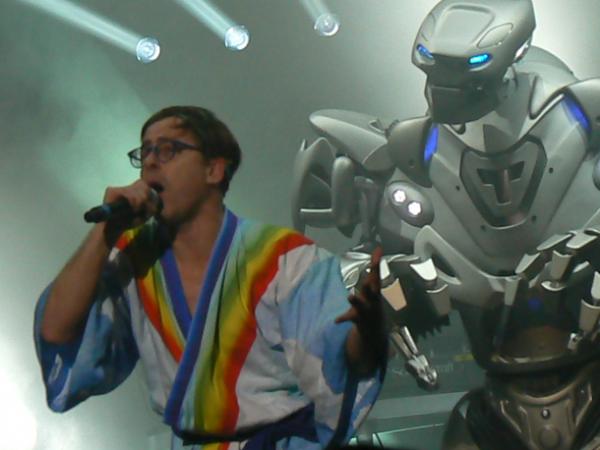 The robot appears on stage too, adding an Iron Maiden touch to the show, Maiden have their mascot Eddie, whilst the Jaxx now have the robot! Where Your Head At is greeted by the audience like a long lost friend. Even the dancing gorilla on stage seemed tamed. The gymnast/vocalist kicks her legs high into the air as Do Your Thing leaves everyone on a high.
